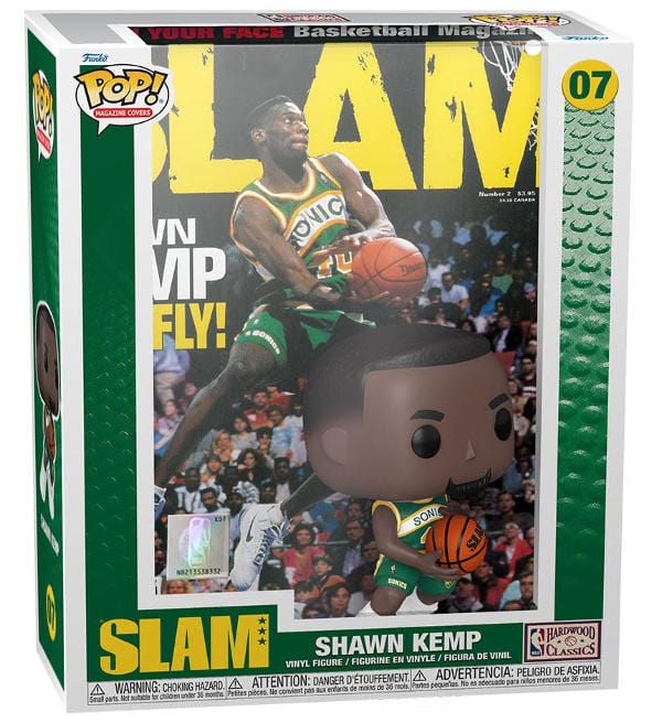Funko POP! "Magazine Covers 07 - Shawn Kemp SLAM" als Trading Card POP!. Die Vinyl-Figur ist ca. 9 cm groß und wird in einer Fensterbox geliefert.