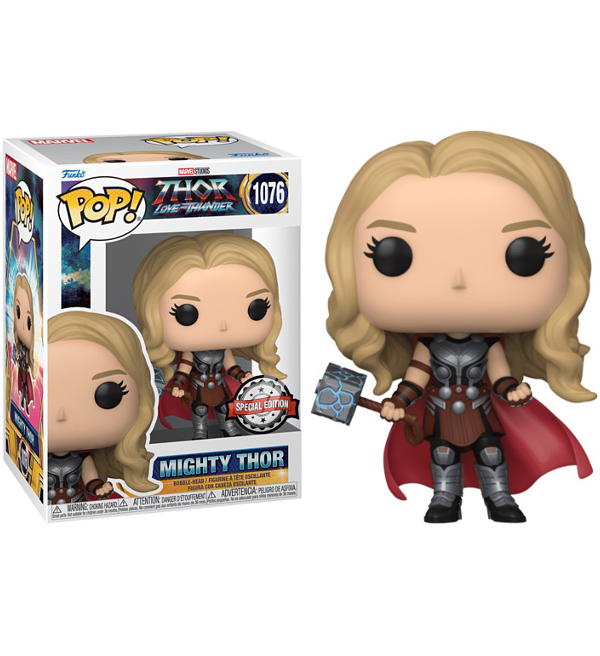 Funko POP! "Marvel 1076 Thor: Love and Thunder - Mighty Thor Special Edition". Die Vinyl-Figur ist ca. 9 cm groß und wird in einer Fensterbox geliefert.