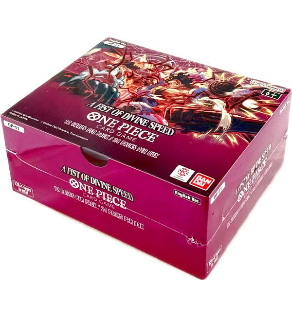 Display mit 24 Tüten zur "One Piece Card Game - A Fist of Divine Speed OP-11" Trading Card Kollektion. Jeder Booster enthält 12 Karten, somit sind in der Box insgesamt 288 Cards enthalten.