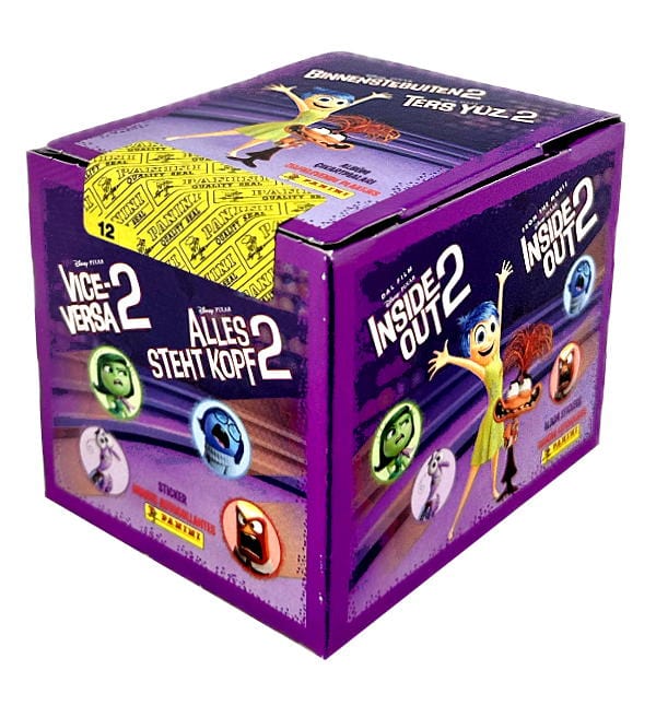 Display mit 36 Tüten aus der Panini Alles steht Kopf 2 Sticker-Kollektion. Jede Tüte enthält 5 Sticker.
