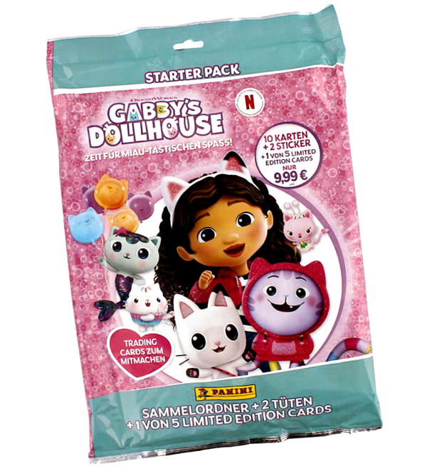 Starterpack zur "Panini Gabby's Dollhouse 2025" Trading Card Serie mit folgendem Inhalt: