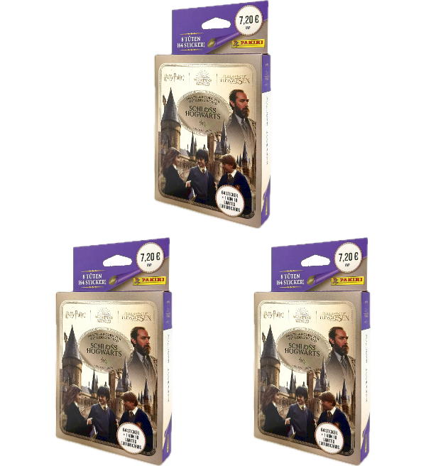 3 x Eco-Blister (=24 Tüten + 3 Limited Edition Cards) zur Panini Harry Potter Sticker Guide 3 Sticker-Kollektion. Jede Tüte enthält 4 große Sticker mit 8 verschiedenen Motiven (=192 Einzelsticker).