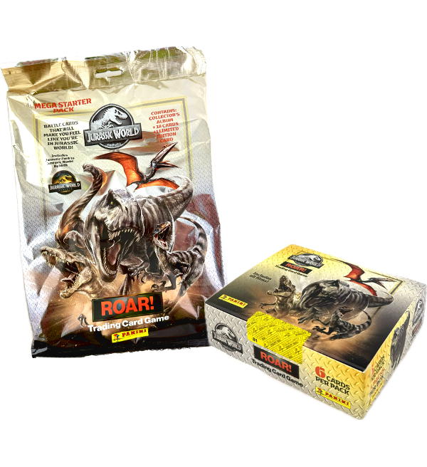 Starterpack + Display zur "Panini Jurassic World ROAR" Trading Card Serie mit folgendem Inhalt: