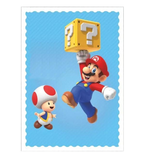 Sammelalbum + Display mit 36 Tüten aus der "Panini Super Mario It's-a Me Mario" Sticker-Kollektion (2025). Jede Tüte enthält 5 Sammelbilder.