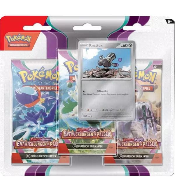 1. Pokemon Karmesin & Purpur Entwicklungen in Paldea - 3-Pack-Blister Knattox - Deutsch
