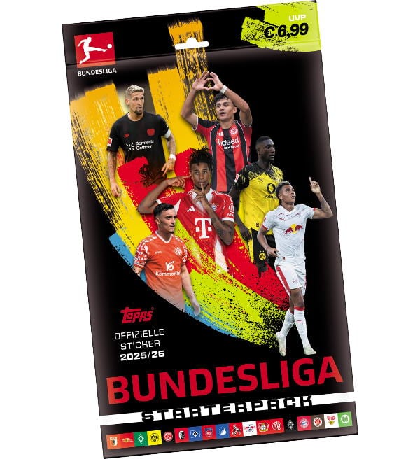 Starterpack zur Topps Bundesliga 2025/2026 Sticker-Kollektion mit folgendem Inhalt: