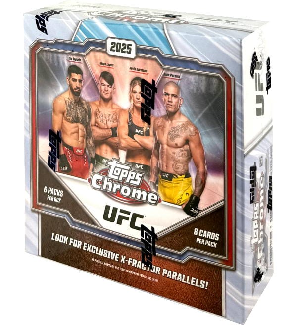 Mega Box zur Topps Chrome UFC 2025 Trading Cards Kollektion mit folgendem Inhalt:
