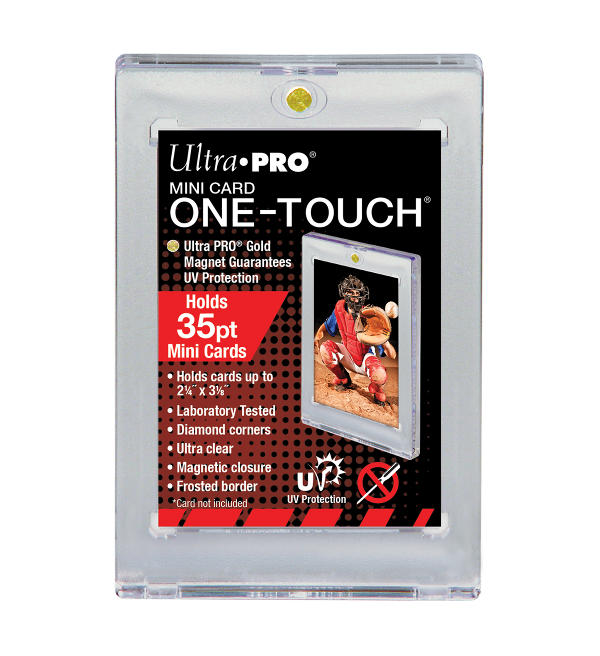 Ein Ultra Pro MINI CARD One-Touch Magnetic Holder 35PT für Karten und Sticker mit der Größe von ca. 57mm x 80mm. Der zweiteilige One-Touch-Halter wurde als endgültiger Bestimmungsort für Deine Sammelkarten entwickelt und ist einzigartig mit Einschubscharnier und Magnetverschluss gestaltet, sodass Du nie wieder einen Schraubenzieher benutzen musst.