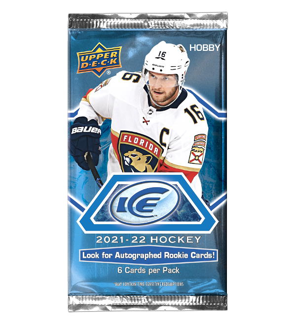 Hobby Box mit 12 Boostern aus der "Upper Deck NHL 2021-22 Hockey - ICE" Trading Card Kollektion + 1 BONUS pack 2020-21. Jeder Booster enthält 6 Karten.